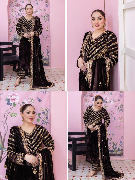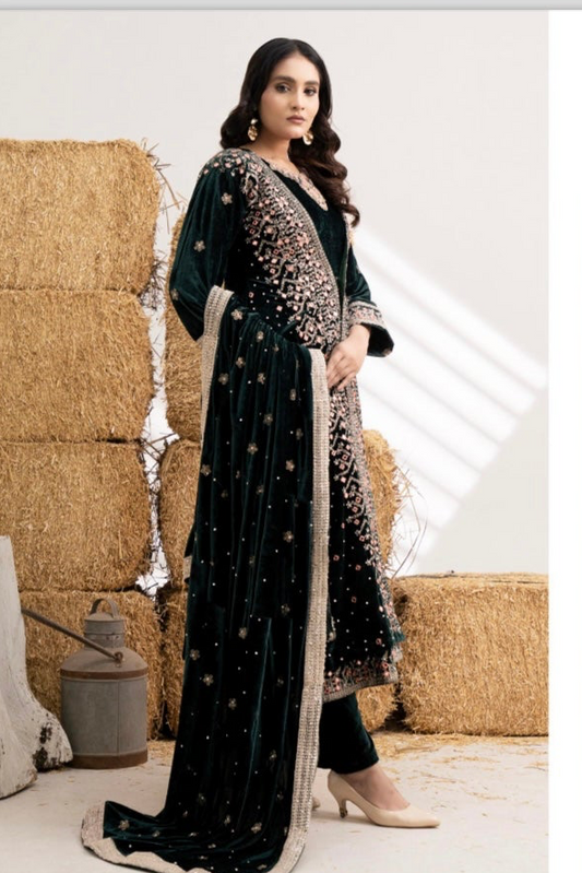 Brit 3 piece luxury Designer Valvet winter Pakistani ladies suit B324