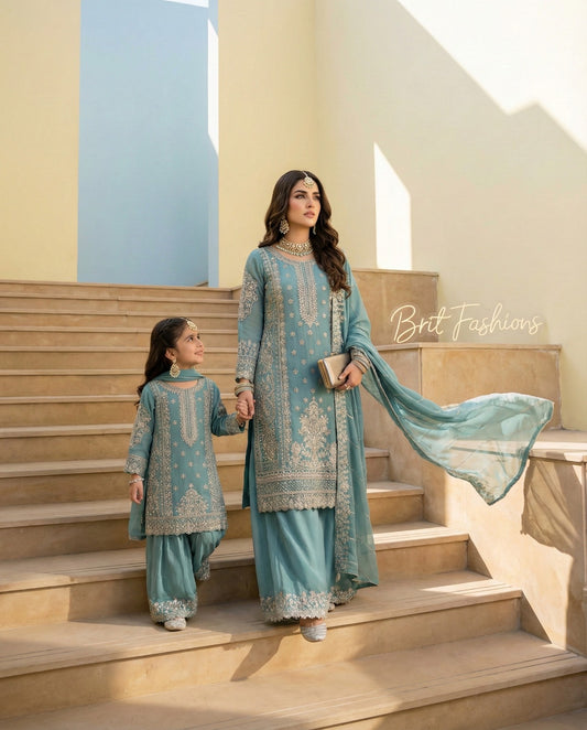 KIDS Mother and daughter 3 piece luxury chiffon _81042 Pakistani ladies suit B507