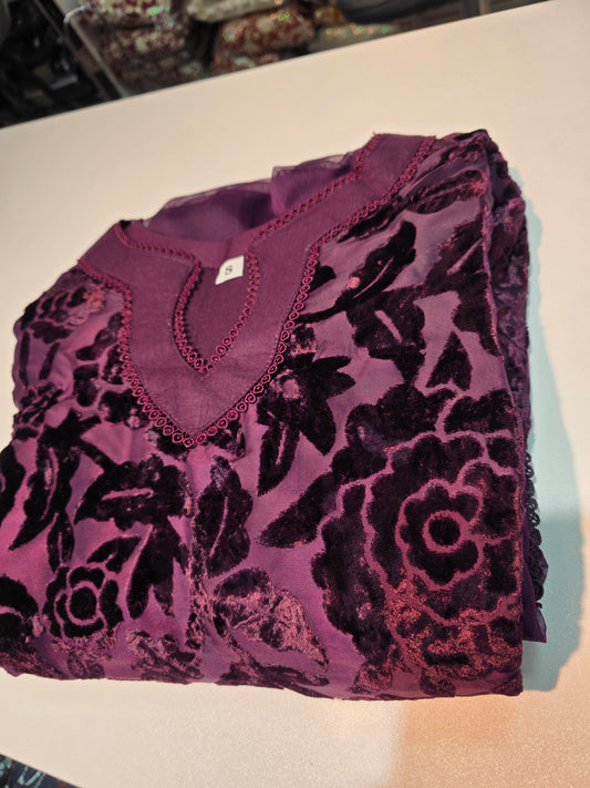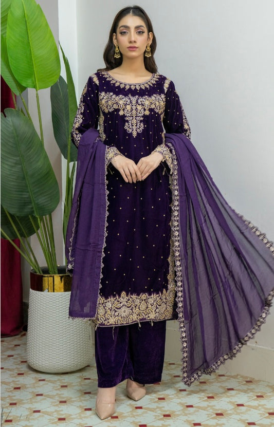 Brit 3 piece luxury Valvet_81042 Pakistani ladies suit purple WITH CHIFFON DUPPATA B291