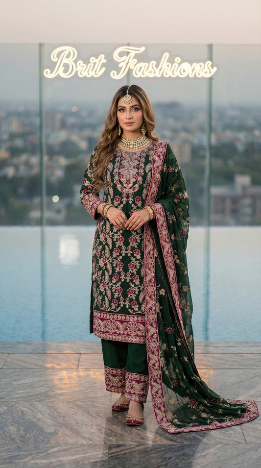 Brit 3 piece luxury Chiffon _81042 Pakistani ladies suit B500