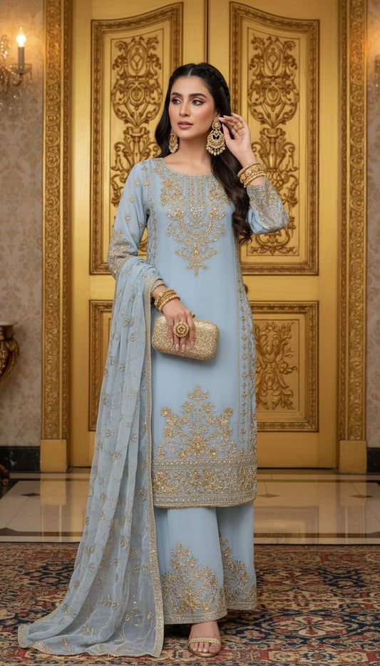 Brit 3 piece luxury Chiffon _81042 Pakistani ladies suit B501