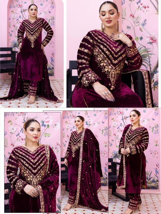 Brit 3 piece luxury Designer Valvet winter Pakistani ladies suit B323