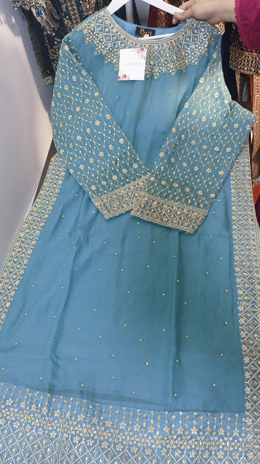 Brit 3 piece chiffon _81042 Pakistani ladies suit teal B233