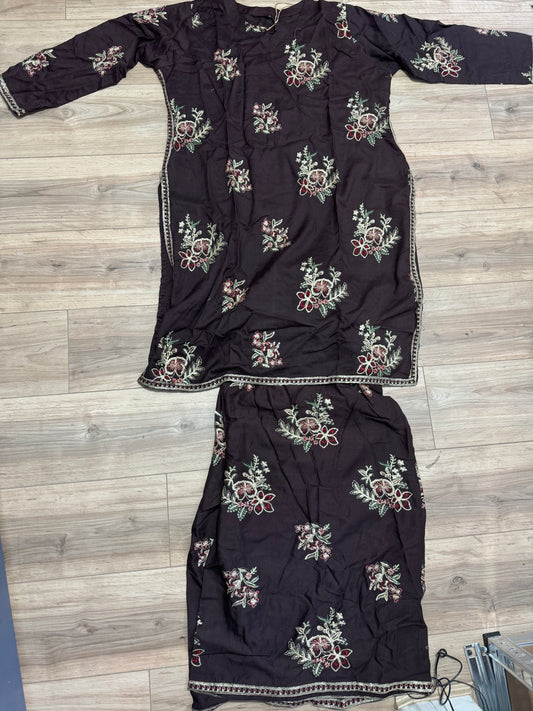 Brit 2 piece luxury linen_81042 Pakistani ladies suit Brown B238