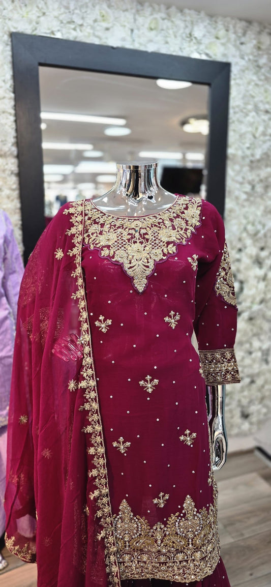 Brit Mother and Daughter 3 piece Chiffon_100293 magenta B100