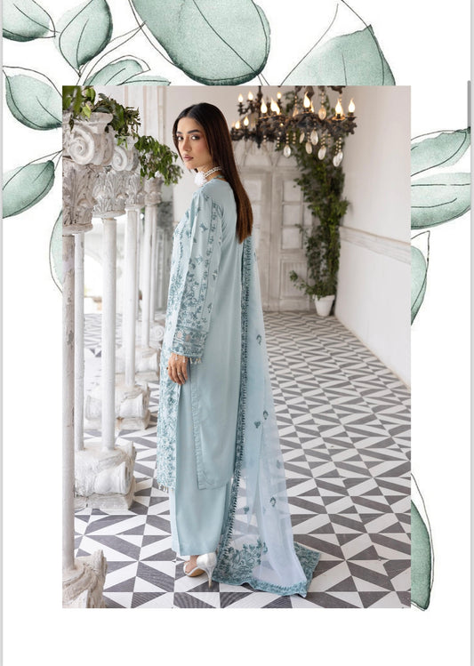 Brit 3 piece chiffon mother and daughter _100209 Ice Blue ladies suit B75
