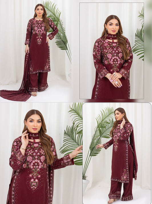 Brit 3 piece chiffon mother and daughter _100214 Maroon ladies suit B75