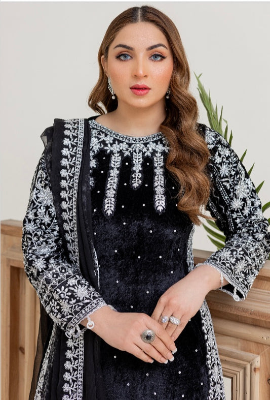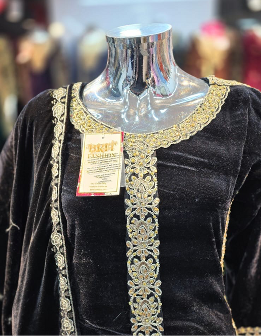 Brit 3 piece velvet_6019 Pakistani ladies suit black B15