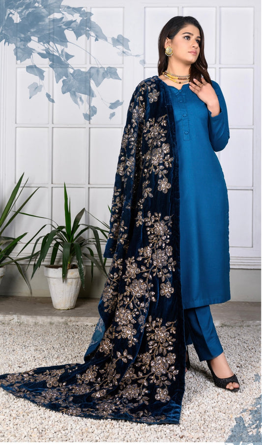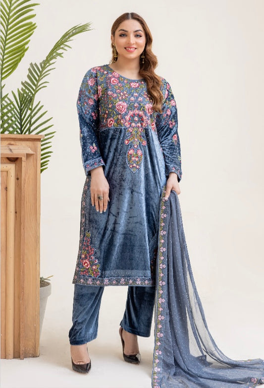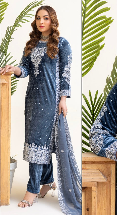 Brit 3 piece velvet_6022 Pakistani ladies suit blue B16