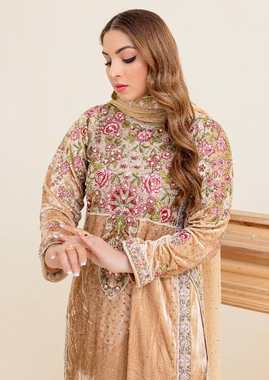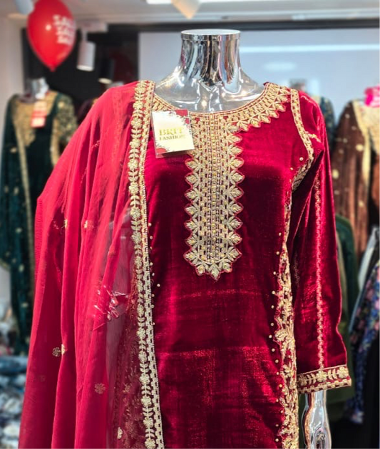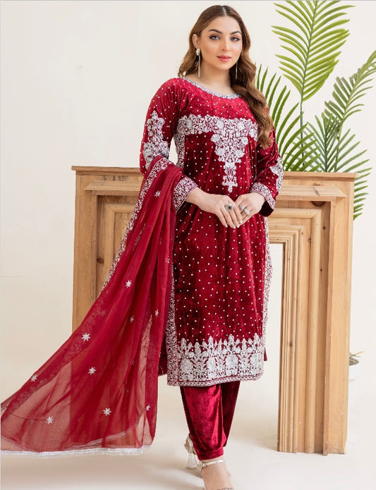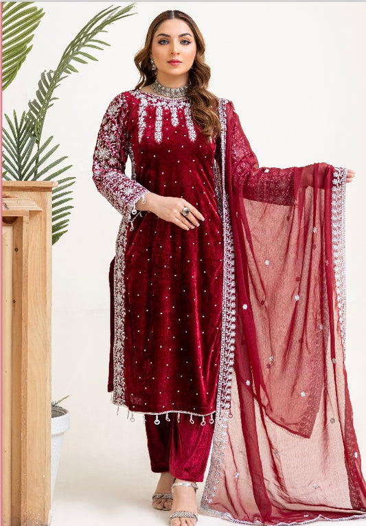 Brit 3 piece velvet_6021 Pakistani ladies suit mehroon B16