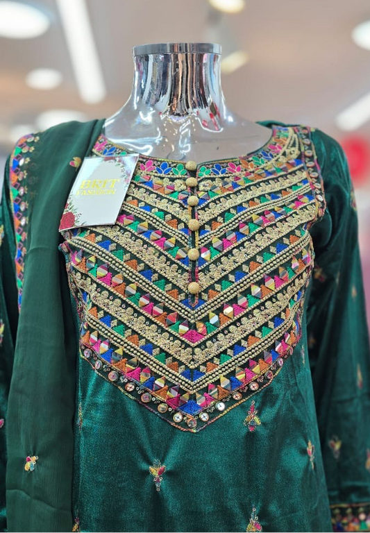 Brit 3 piece velvet_6041 ladies Pakistani suit Green B13