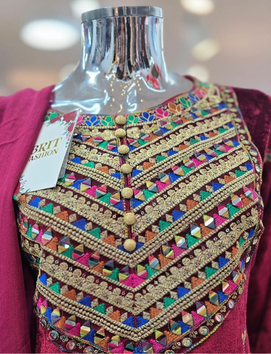 Brit 3 piece velvet_6039 ladies and kids Pakistani suit mehroon B13
