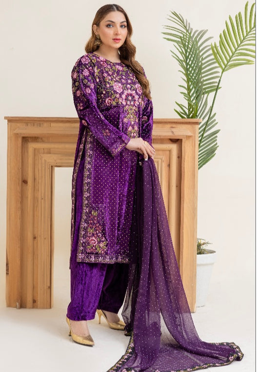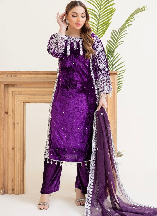 Brit 3 piece velvet_6038 ladies Pakistani suit Purple B13