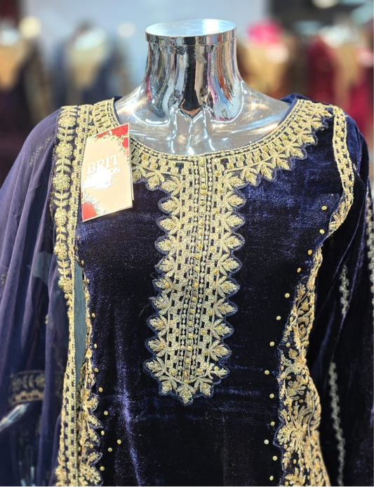 Brit 3 piece velvet_6017 Pakistani ladies suit navy B14