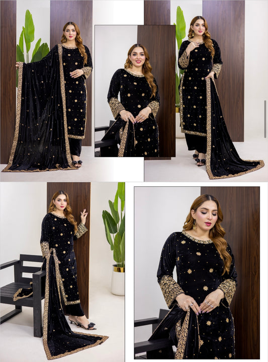 Brit 3 piece luxury 11000 Valvet with Valvet shawl_81042 Pakistani ladies suit Black B305