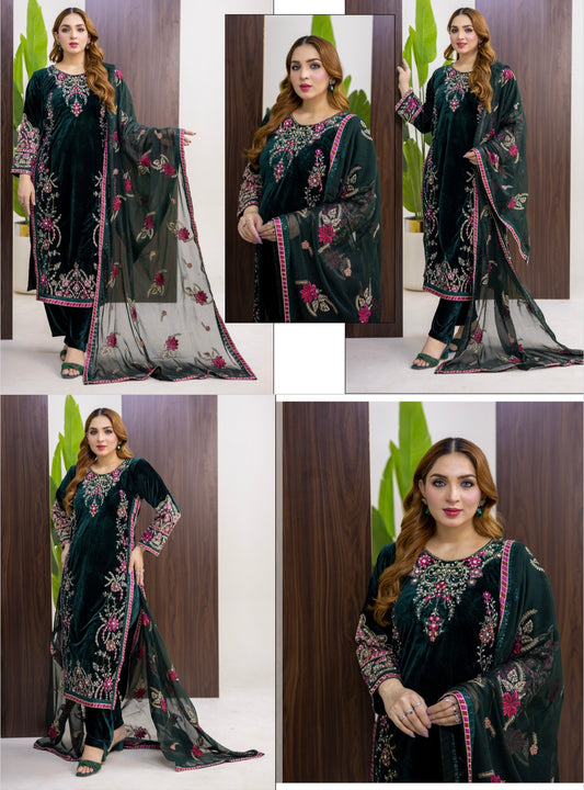 Brit 3 piece luxury Valvet_81042 Pakistani ladies suit Green B301