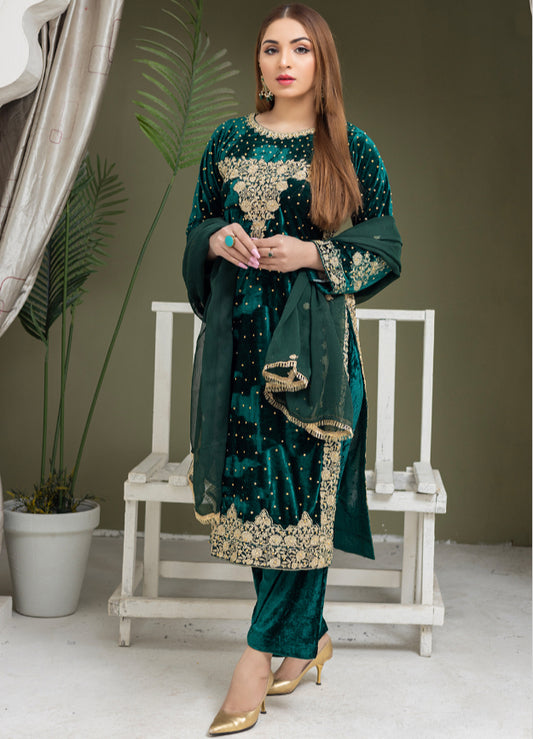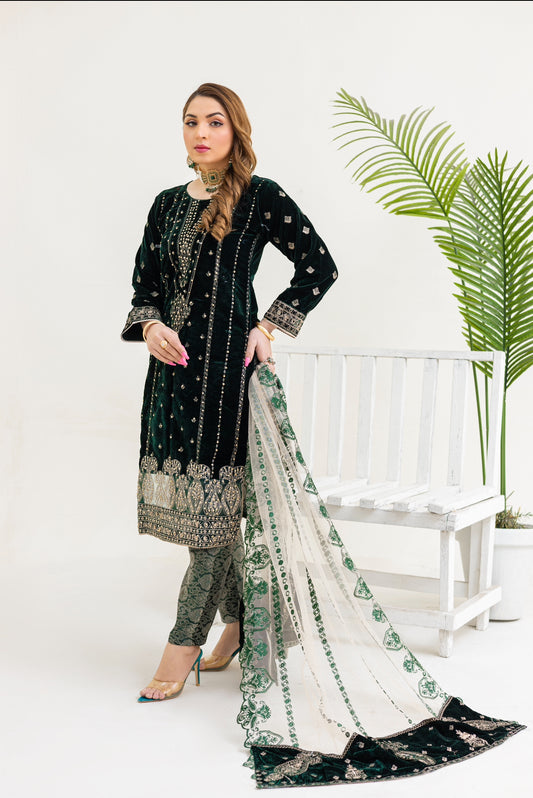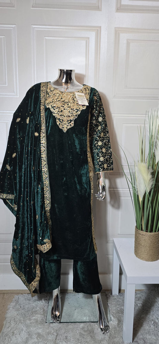 Brit Valvet 3 piece with Valvet shawl_4093 D2 green