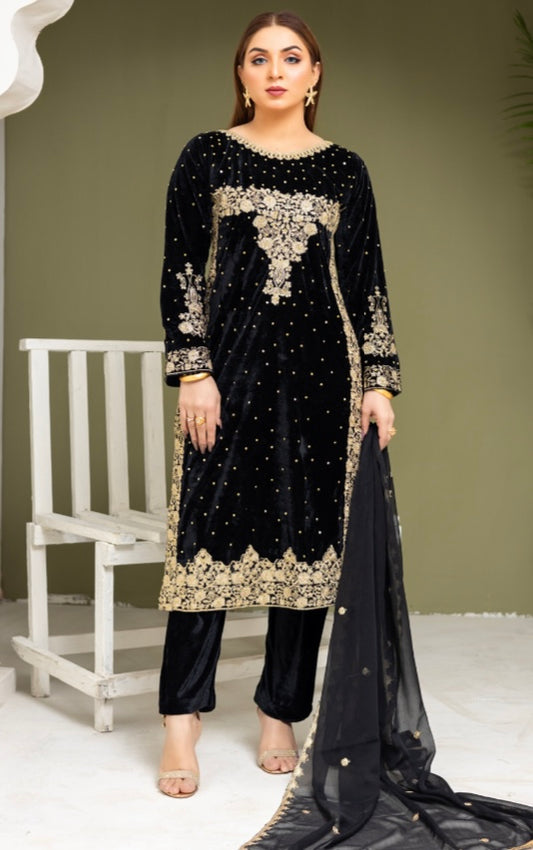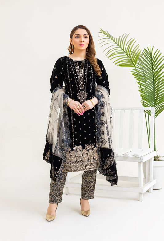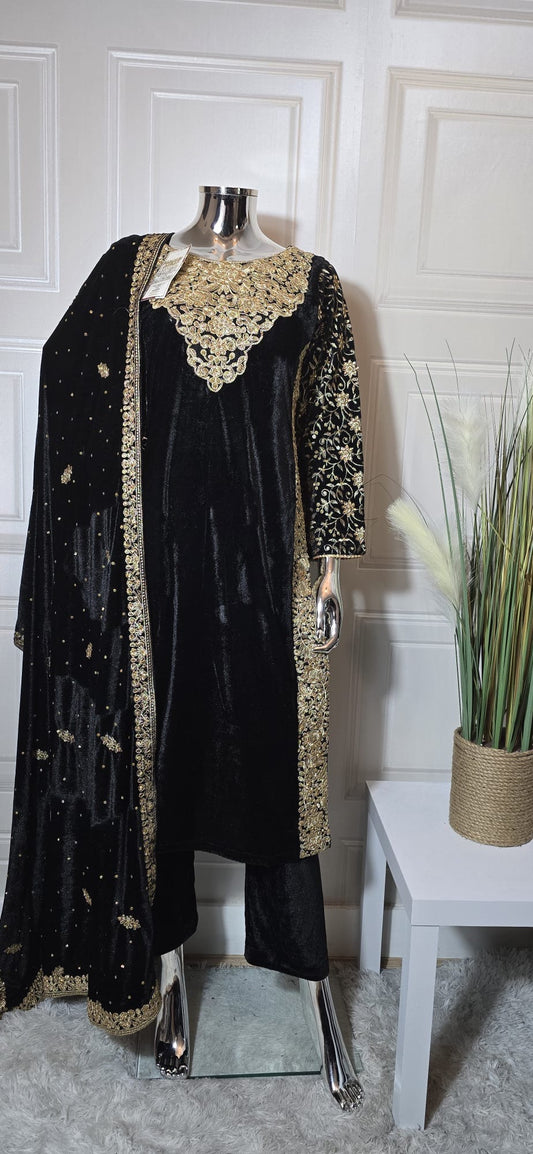 Brit Valvet 3 piece with Valvet shawl _4093 D2 black