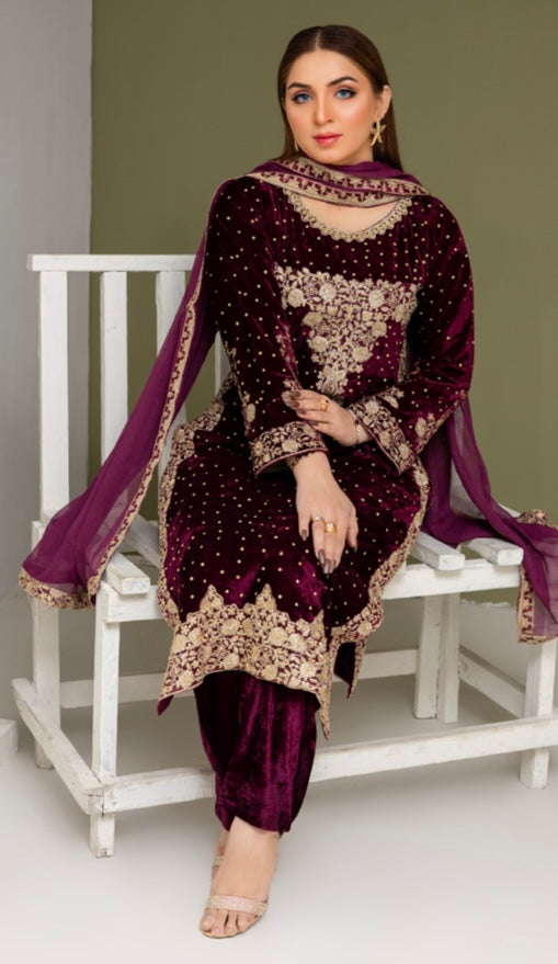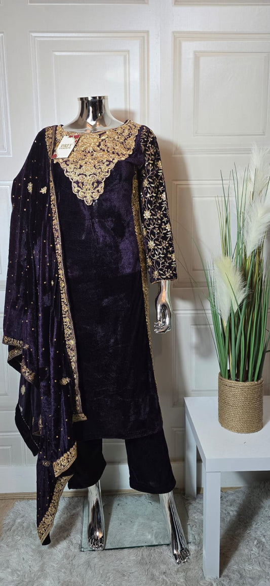 Brit 3 piece Mother and daughter velvet_5004 ladies suit N2