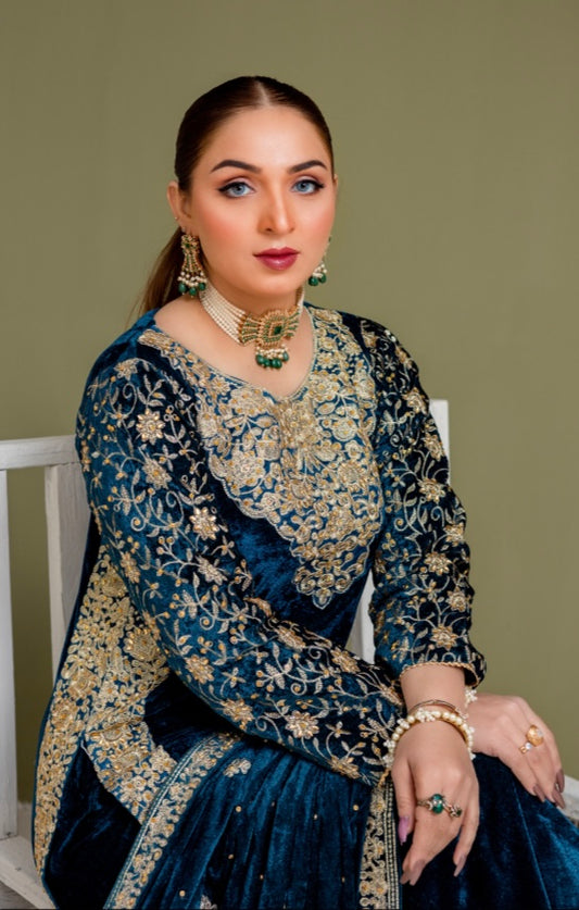 Brit Valvet 3 piece with Valvet shawl_4000 D2 Teal
