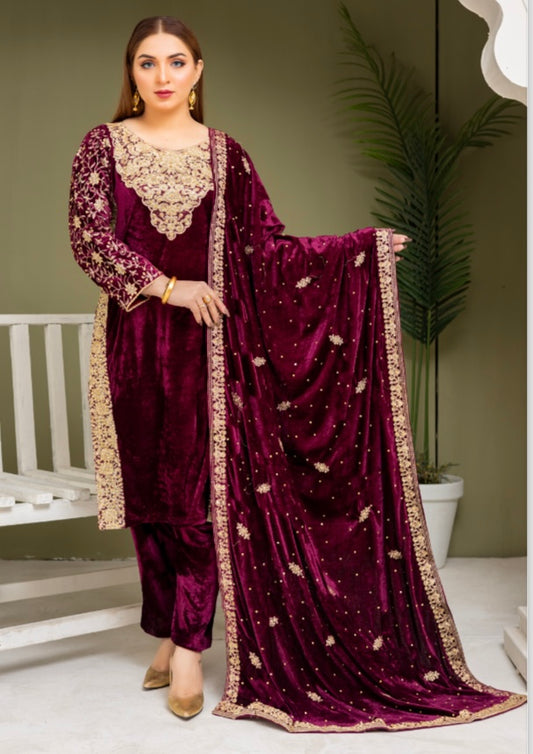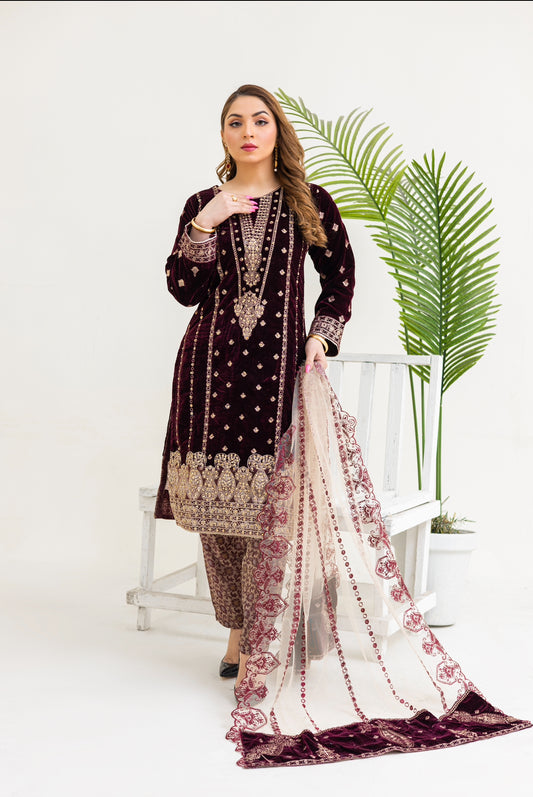 Brit Valvet 3 piece _3029 Mehroon ladies and kids B5