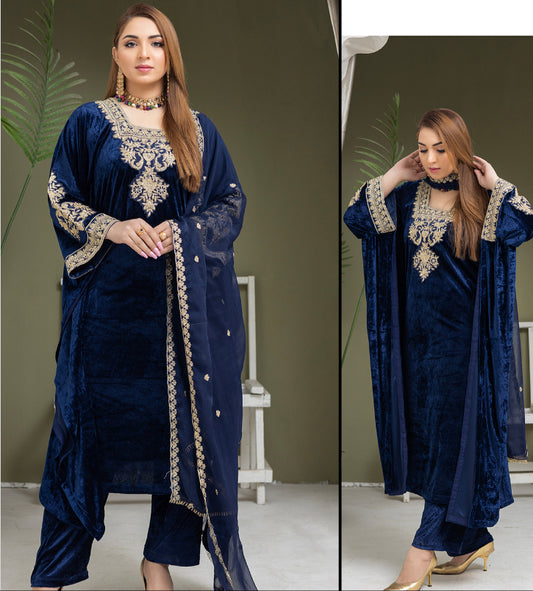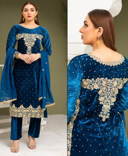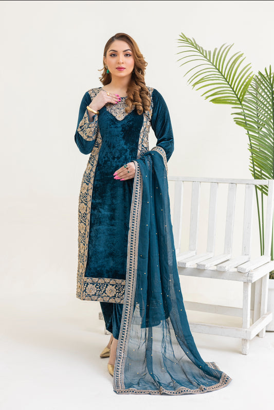 Brit 3 piece velvet wear_3015 Teal B10