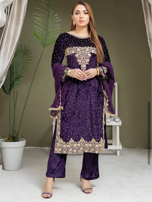 Brit 3 piece velvet wear_3013 purple B10