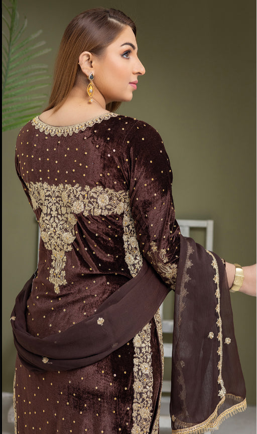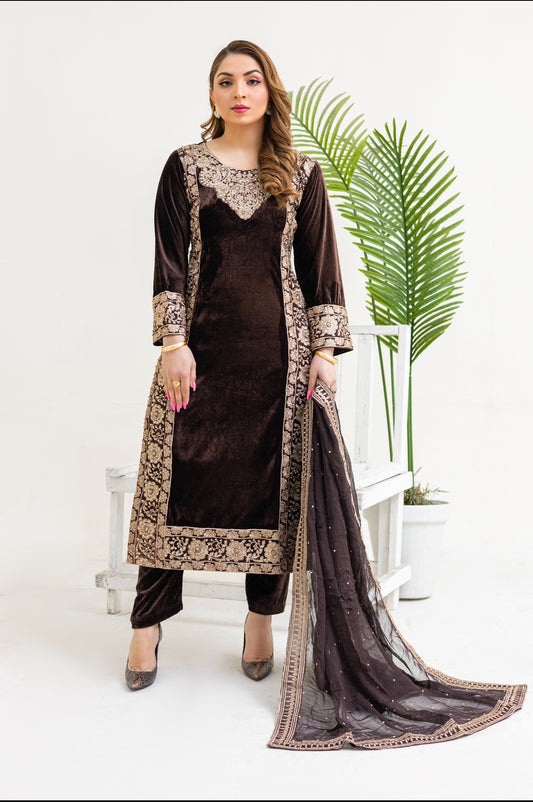 Brit 3 piece velvet wear_3011 brown B10