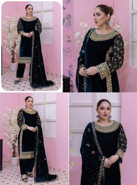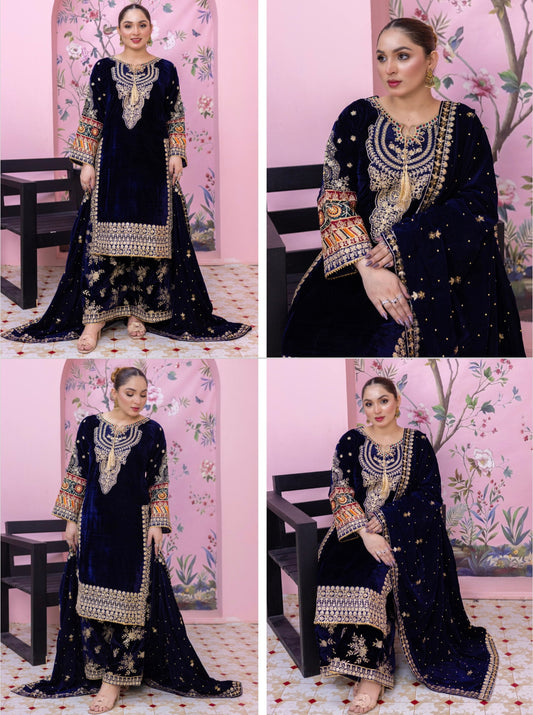 Brit 3 piece luxury Valvet_81042 Pakistani ladies suit_ Navy_ B297