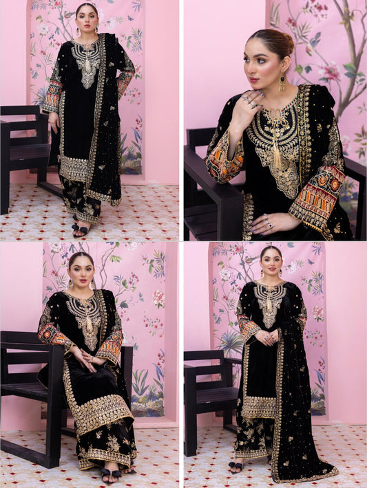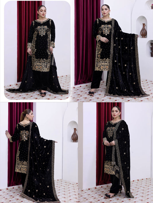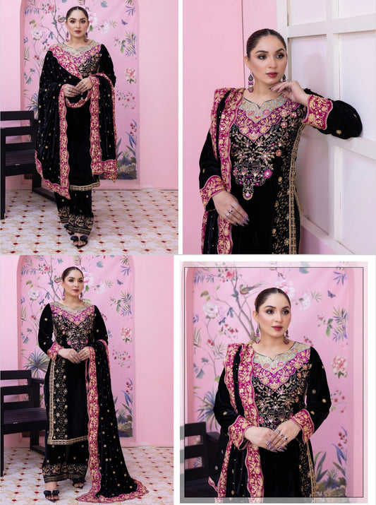 Brit 3 piece luxury Valvet_81042 Pakistani ladies suit black B290