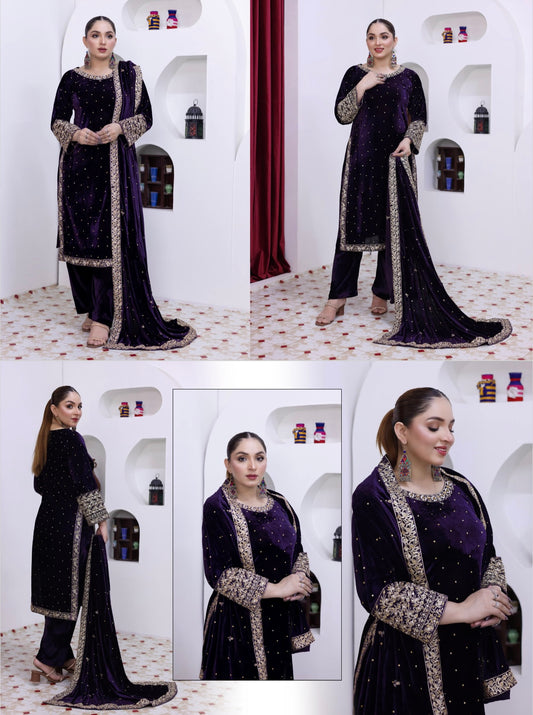 Brit 3 piece luxury Valvet_81042 Pakistani ladies suit purple B289