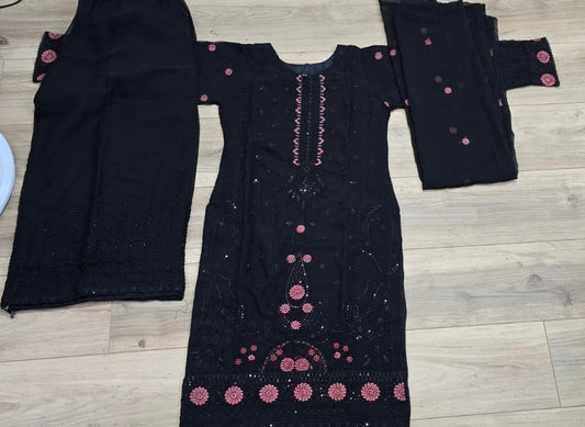Brit designer Chiffon _81042 Pakistani ladies suit black B181