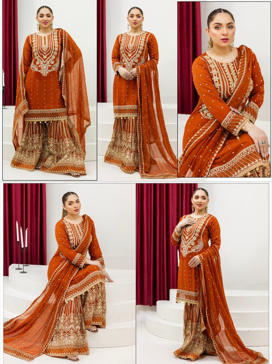 Brit designer Chiffon _81042 Pakistani ladies suit orange B181
