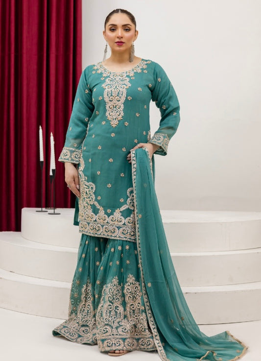 Brit 3 piece velvet_81042 Pakistani ladies suit Teal B269