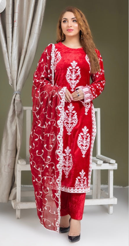 Brit 3 piece velvet_6009 Pakistani ladies suit wine B20