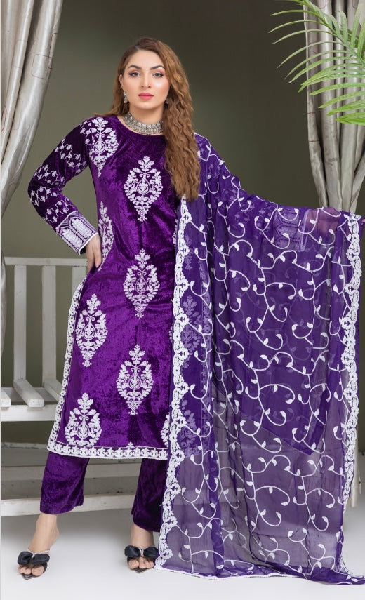 Brit 3 piece velvet_6010 Pakistani ladies suit purple B20