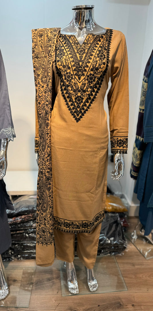 Brit 3 piece velvet_6014 Pakistani ladies suit brown B20