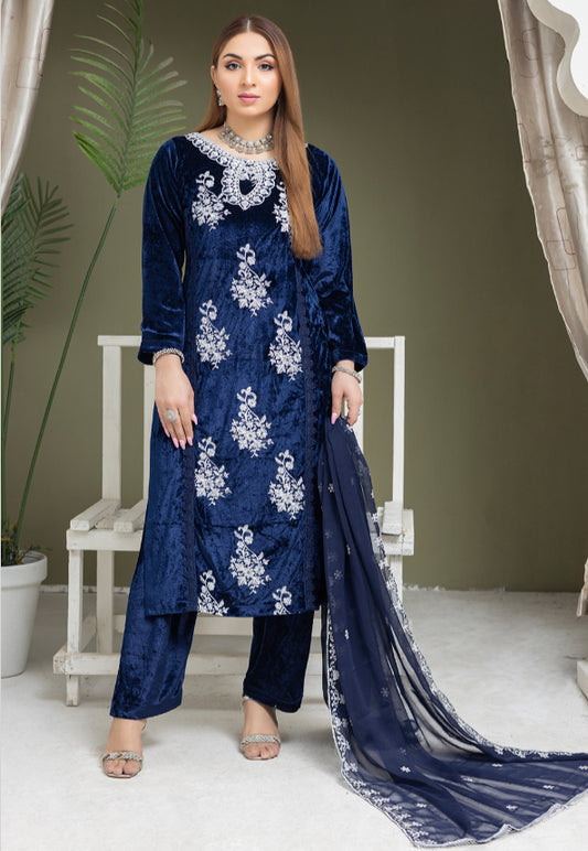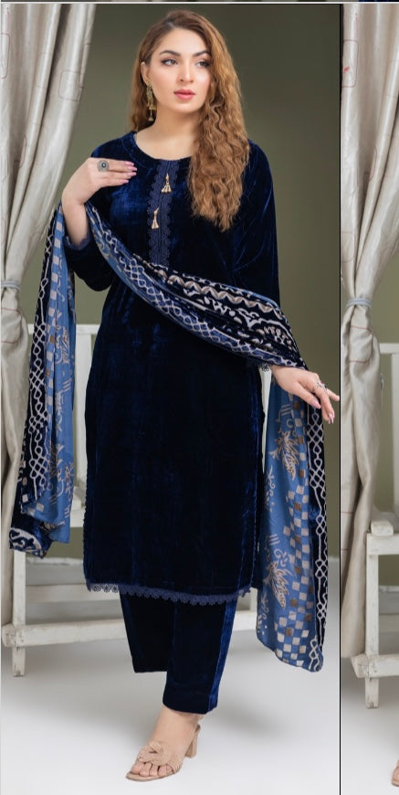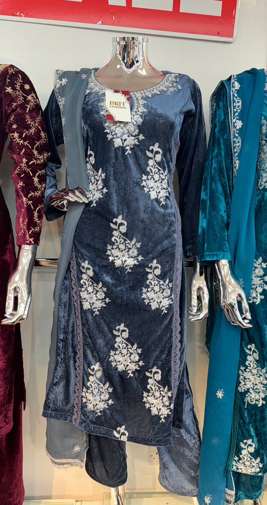 Brit Valvet 3 piece_3058 with plachi shawl navy B24