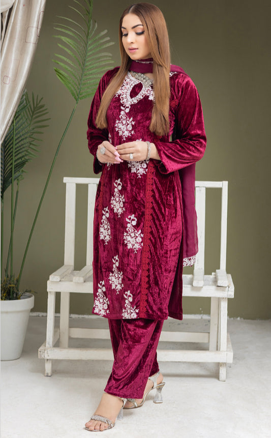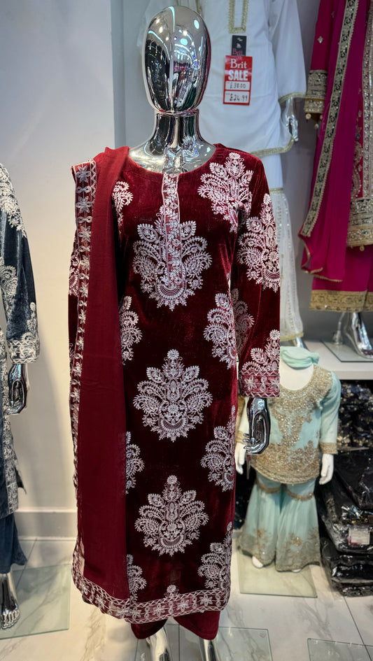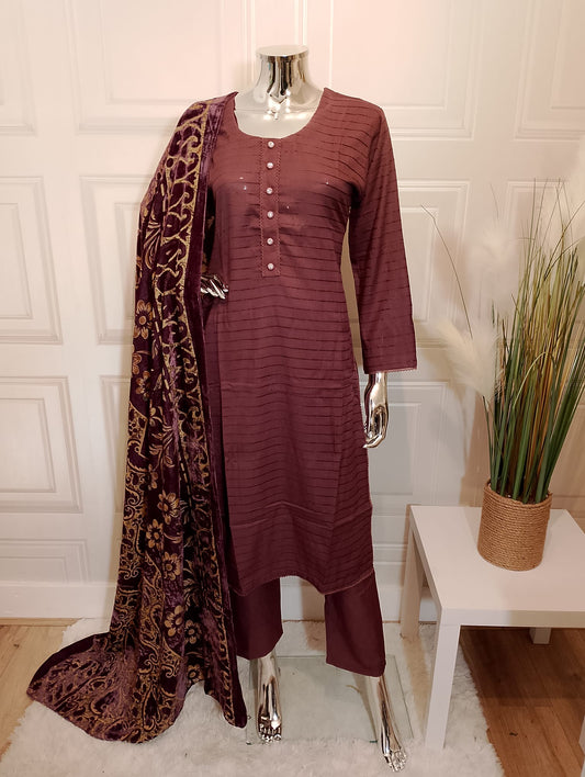 Brit Valvet 3 piece_3057 with plachi shawl plum B24