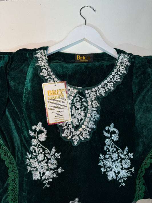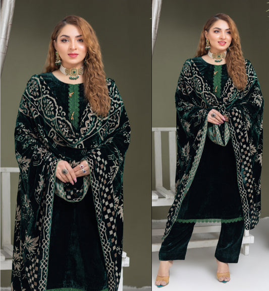 Brit Valvet 3 piece_3056 with plachi shawl green B24