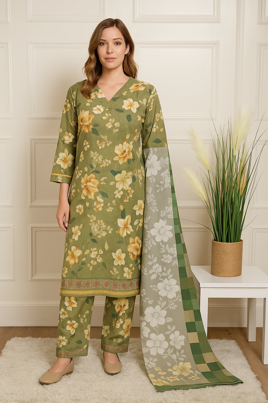 Mairyah print linen 3 piece_4038 Pakistani suits for ladies B263