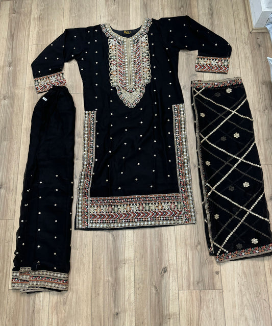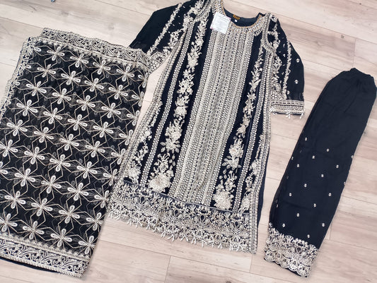 Brit 3 piece luxury chiffon_81042 Pakistani ladies suit Black B245