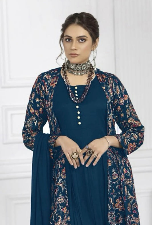 Brit 3 piece chiffon_6068 Pakistani suits Teal B35