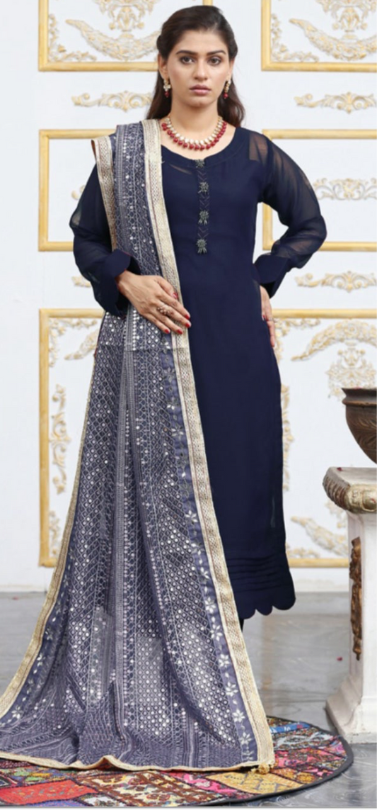 Brit 3 piece Dhanak_6066 Pakistani suits nevy B35