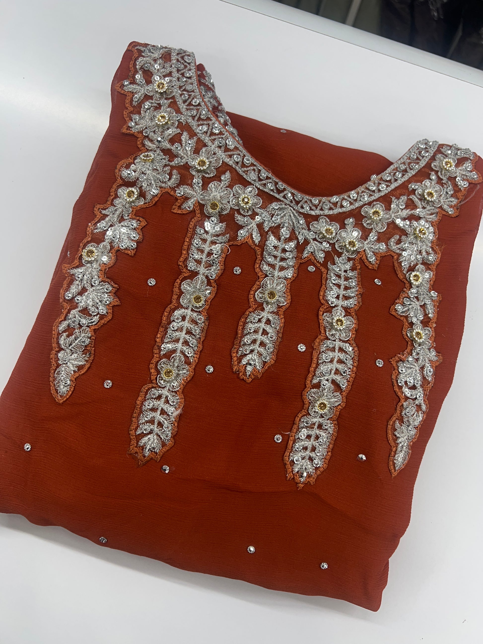 Brit 3 piece chiffon _8094 Rusty Orange With Palazzo trouser B77