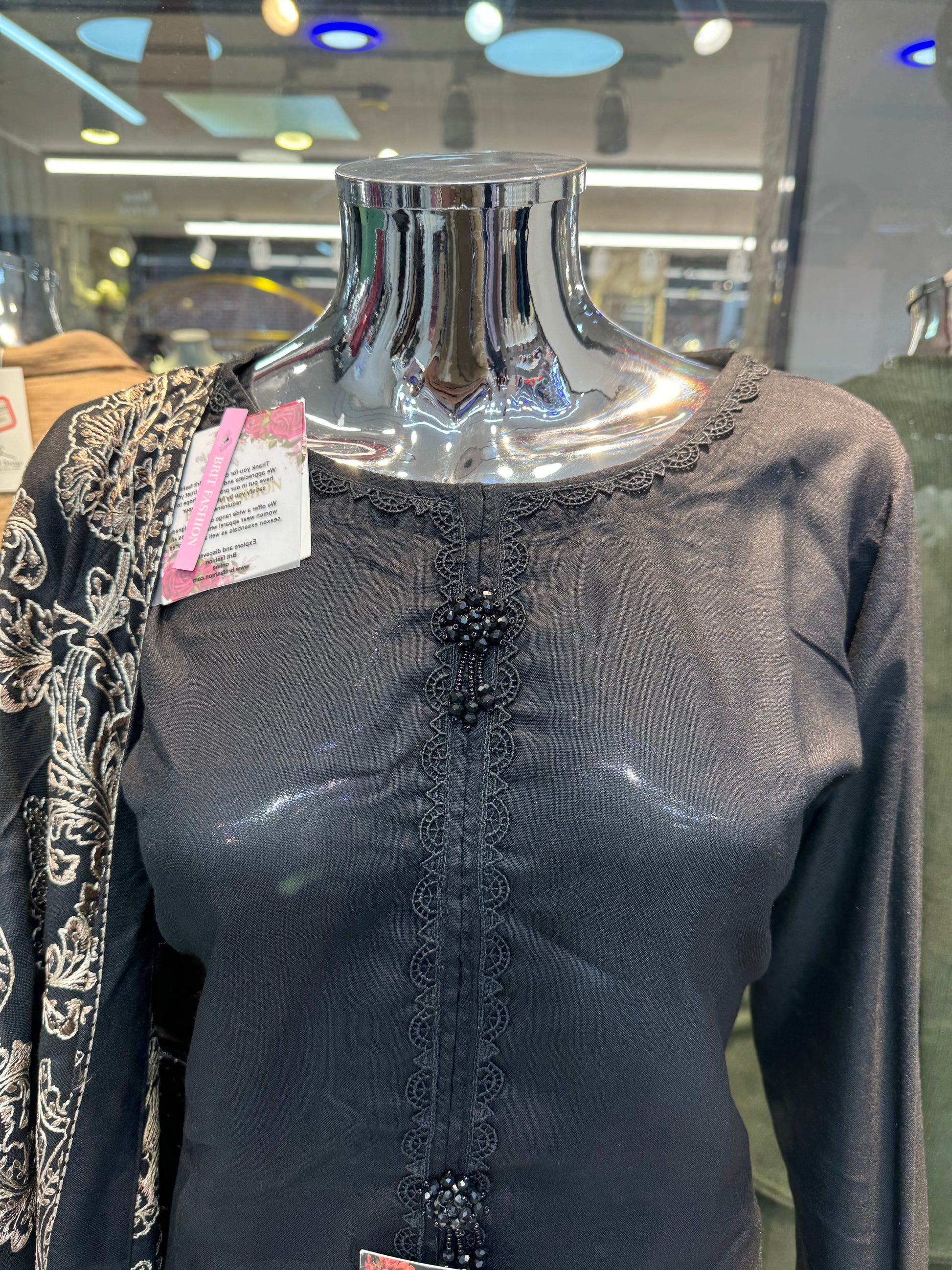 Brit 3 piece Dhanak _81042 Pakistani ladies suit black CD2