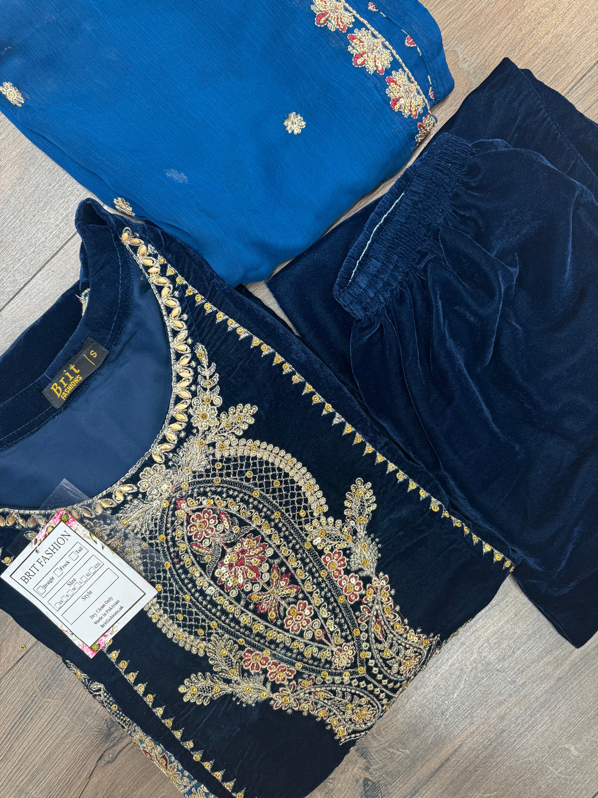 Brit 3 piece luxury Designer Valvet winter Pakistani ladies suit B320
