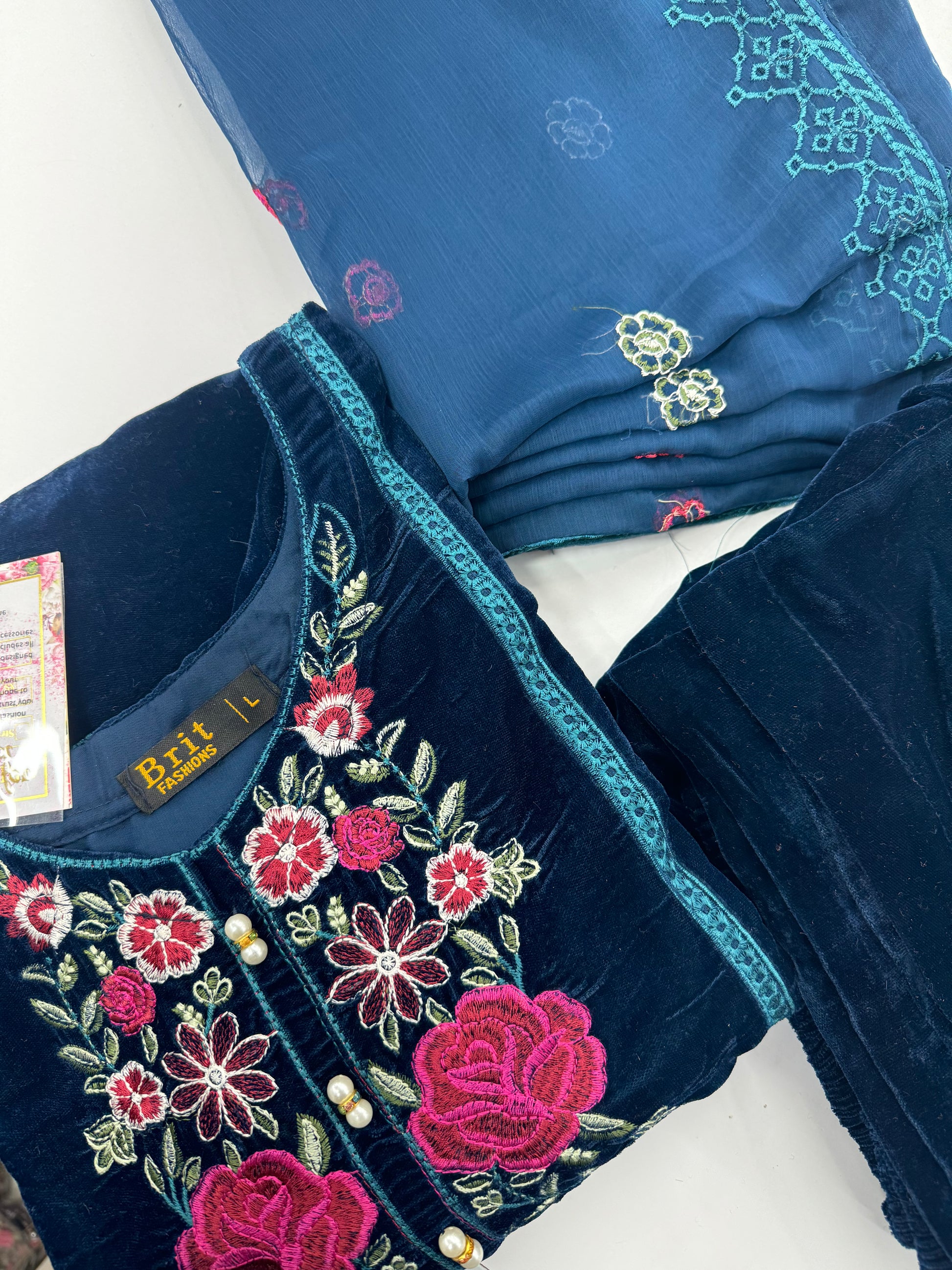 Brit 3 piece luxury Designer Valvet winter Pakistani ladies suit B324