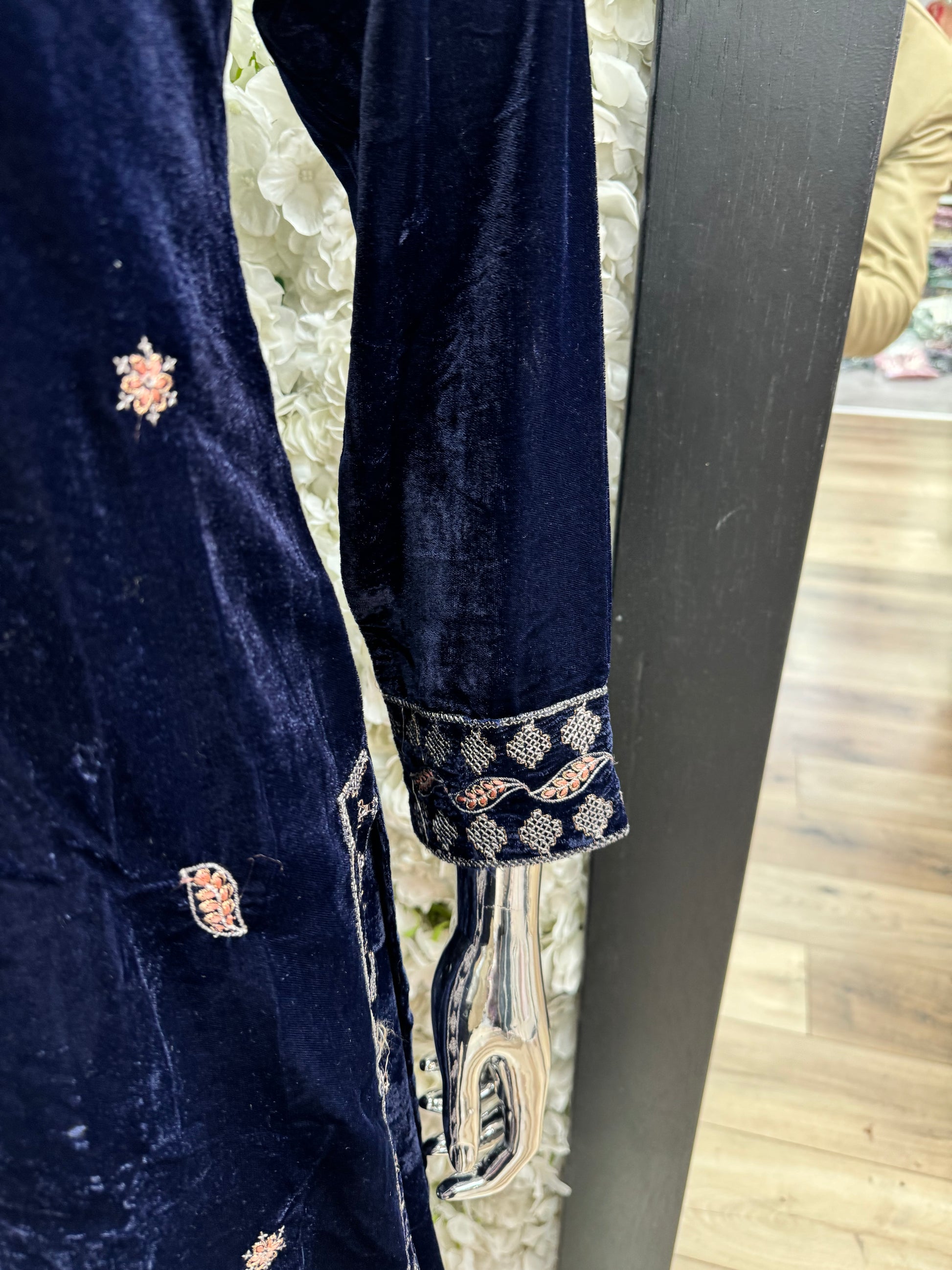 Brit 3 piece luxury Valvet with designer shawl_81042 Pakistani ladies suit Navy B285