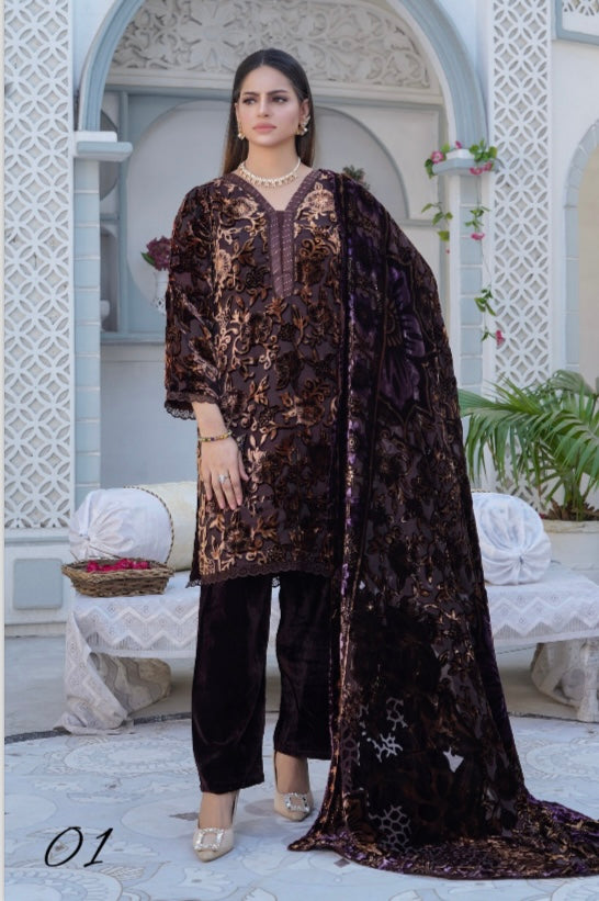 Brit 3 piece Micro Palachi Pakistani ladies Winter collection suit B415